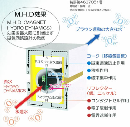 ネオジウム磁石とリフレクターの作用で、ブラウン運動の大きな水を作る電磁化学活水装置です!
